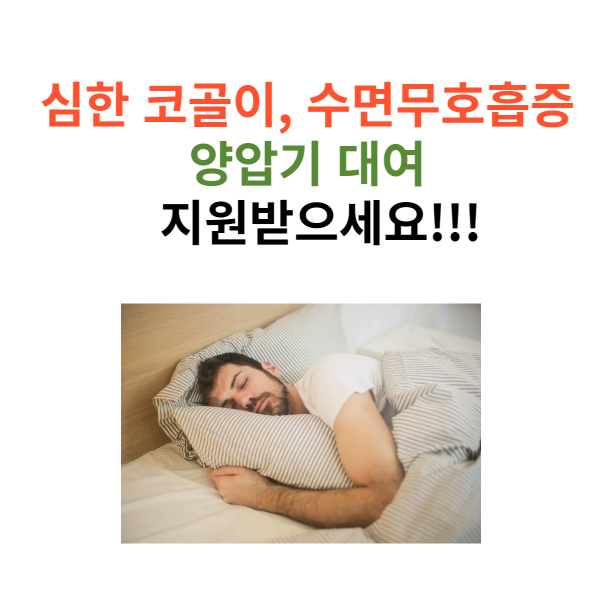 코골이의 원인은 근육이 늘어지거나 살이 찌거나 하는 원인으로 좁아진 기도에 공기가 지나가며 생기는 소리가 코를 통해 코골이 소리를 냅니다. 이것이 심해지면 기도가 완전히 닫혀 잠을 자다가 갑자기 숨이 막히는 폐쇄성 수면무호흡증 증세가 나타납니다. 이 문제를 해결하기 위해 양압기를 개인적으로 구매하여 사용하는 사람들이 많은데요. 양압기 가격은 최저 10만 원대부터 최대 100만 원까지 다양한데요. 여러분 양압기 대여료 지원이 가능하다는 사실을 아셨나요? 오늘은 양압기 대여료 및 소모품 구입비 지원에 대해 알아보겠습니다.