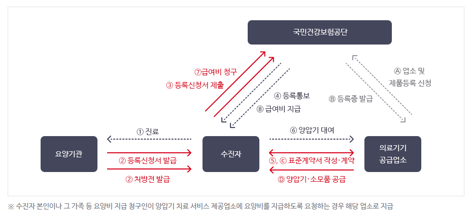 - 급여대상 : 양압기 치료 서비스 대상자로 공단에 등록된 자